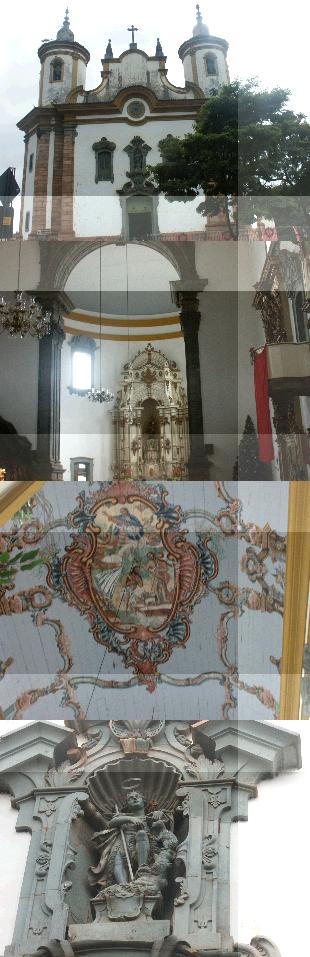 Barão de Cocais. A cidade, marcada na sua fisionomia urbana pela mineração, destaca-se nos estudos de história da arte e de arquitetura pelas suas igrejas, a do Rosário, a de Nossa Senhora de Sant'Ana e, em particular, a igreja matriz de São João Baptista (São João do Morro Grande). As origens da localidade remontam a uma povoação fundada pelo bandeirante Manoel de B. da Câmara, em 1704. Uma capela sob a invocação de São João, já citada em documentos de 1713, existente no Presídio do Morro Grande, passou em 1749 a paróquia, dando lugar ao templo atual, de impressionantes dimensões, edificado em 1763. Do ponto de vista arquitetônico, constata-se aqui uma harmoniosa integração de princípios tradicionais construtivos com concepções mais elaboradas, expressas sobretudo nas torres laterais, arredondadas. Essas torres emolduram uma fachada imponente nas suas dimensões, nas suas proporções e na severidade da disposição das janelas e do portal. Do ponto de vista escultural, salienta-se a imagem de São João, uma das representações mais significativas do Precursor no Brasil e monumento de sua presença na religiosidade da região no século XVIII. A obra é atribuída a Antonio Francisco Lisboa, o Aleijadinho. Aspecto central das concepções joaninas se manifesta na pintura do teto da Igreja, representando o batismo de Jesus.