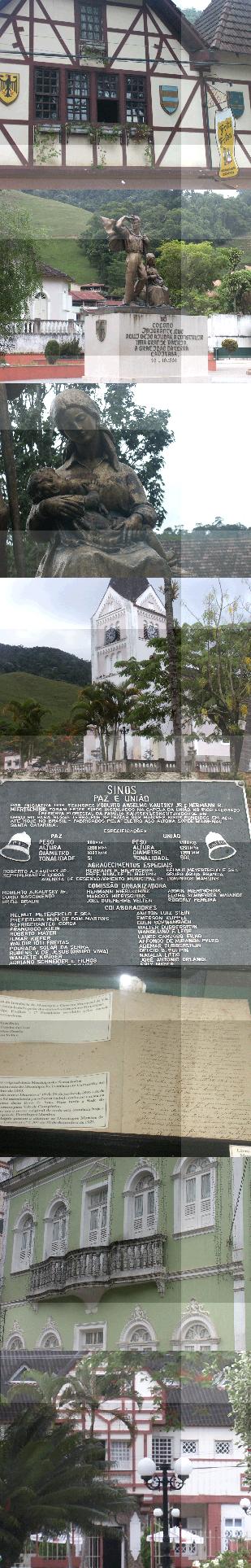 Domingos Martins. Apesar de sua denominação aparentemente não o sugerir, a cidade de Domingos Martins é um dos centros do teuto-brasileirismo. A sua relevância para os estudos históricos da imigração torna-se evidente para o pesquisador da área que a conhece sob os antigos nomes de Santa Isabel (e Campinho). A denominação de Santa Isabel (assim como as das próximas Santa Leopoldina e Santa Teresa) manifesta o vínculo de suas origens com o passado imperial do Brasil. A partir da difusão na Renânia do intituito de D. Pedro II° em apoiar o estabelecimento de imigrantes europeus no país (1846), várias famílias alemãs, sobretudo da região de Hunsrück, decidiram procurar um melhor destino na América do Sul. Com o apoio do governador da Província do Espírito Santo, Luiz Pedreira do Couto, foram estabelecidos na região denominada pelos indíos Botocudos de Cuité. A identificação confessional dos colonos foi desde o início de particular significado na formação das comunidades. Os imigrados católicos permaneceram em Santa Isabel, os luteranos dirigiram-se à região mais elevada de Campinho. Já em 1852 foi consagrada a primeira igreja católica. Os cultos protestantes, realizados primeiramente em casas particulares ou em capela logo edificada, passaram logo a ser celebrados em igreja que se tornou um símbolo na história evangélica do Brasil, uma vez que é considerada como sendo a primeira com torre no país. A história de Domingos Martins, que tem os seus documentos cuidadosamente preservados e estudados no museu local, apresenta numerosos nomes de personalidades locais que se destacaram na história local e regional. Para o estudo das relações culturais entre a Europa e o Brasil, a história da comunidade oferece inúmeros subsídios.